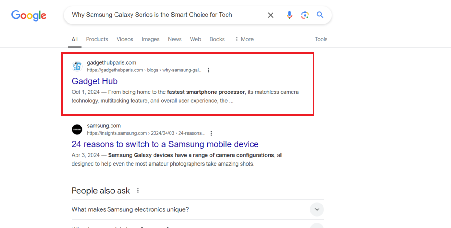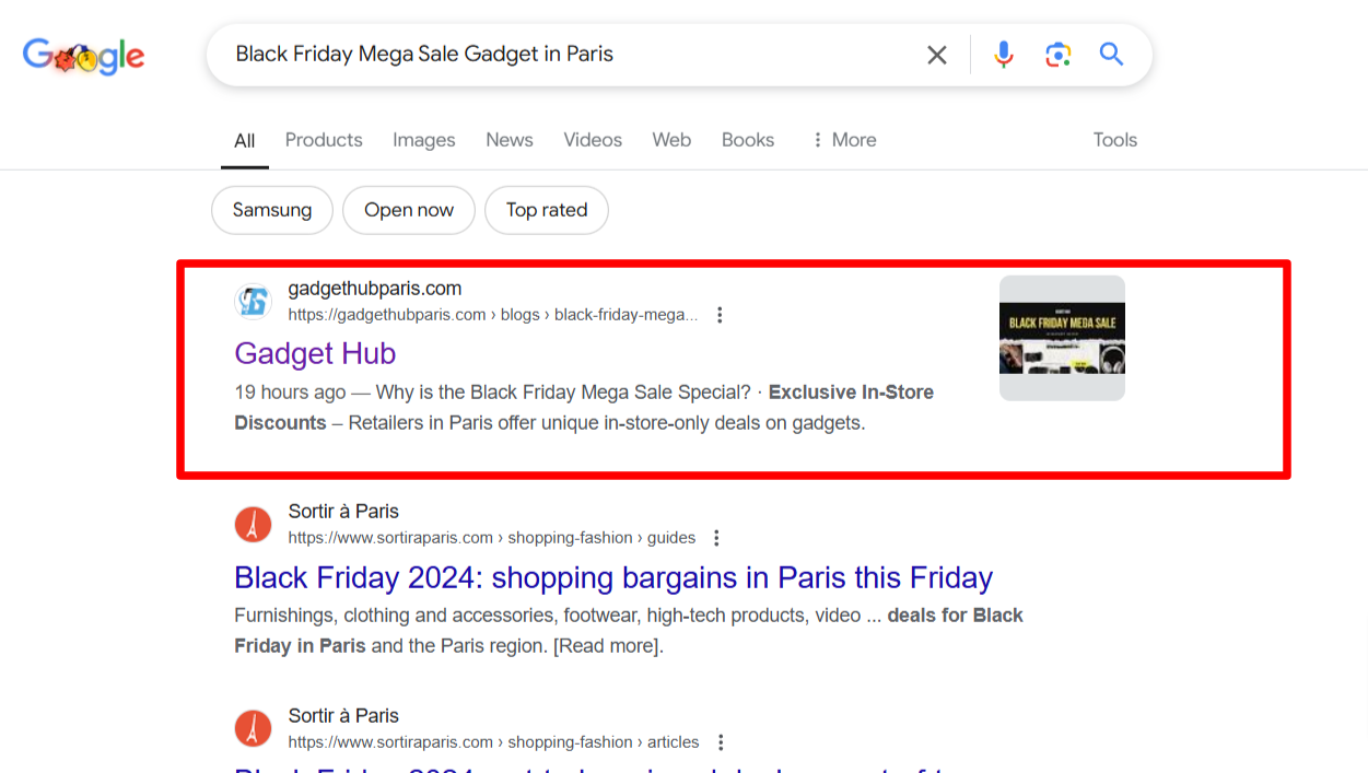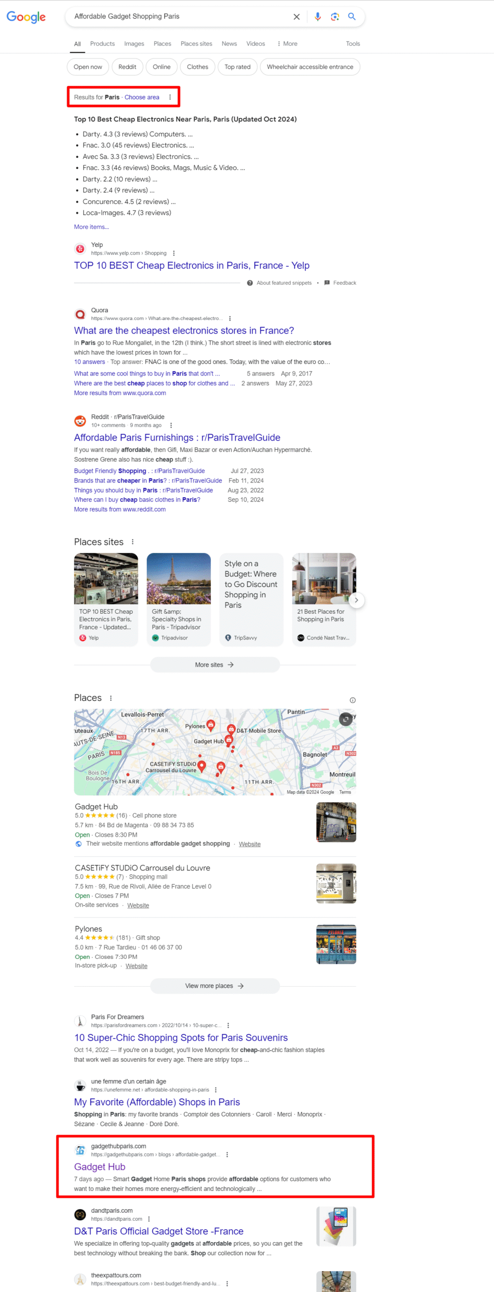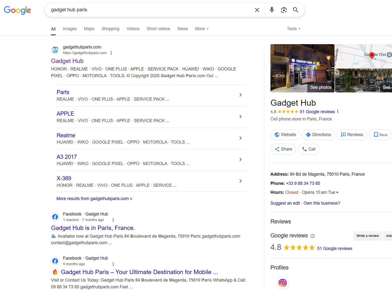 Since Gadget Hub Paris also targets local shoppers, we optimized their Google Business Profile, managed reviews, and ensured consistency of NAP (Name, Address, Phone) across platforms to boost local visibility.