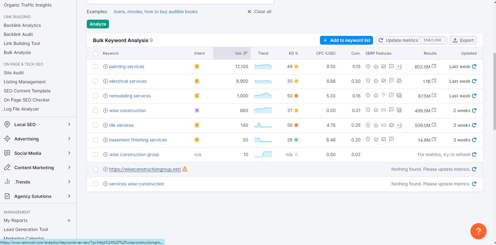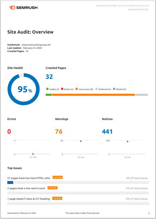 As an SEO specialist for Wise Construction Group in 2023, I was responsible for improving the company’s online visibility and search engine performance. My key contributions included: